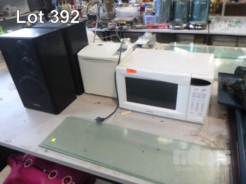 SAMSUNG 1000W MICROWAVE, PANASONIC BREAD MAKER, TECHNICS SPEAKERS & GLASS PANELS
