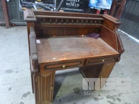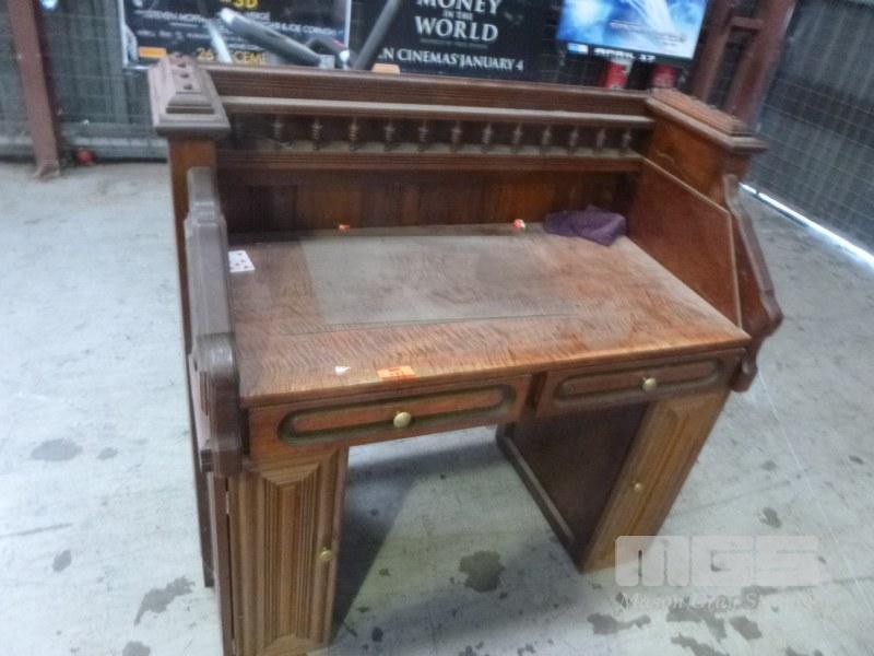 SOLID TIMBER WRITING DESK, EDWARDIAN STYLE, 2 DRAWER WITH 2 DOOR UNDERSTORAGE