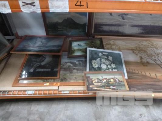 ASSORTED FRAMED PAINTINGS, PRINTS & MIRROR