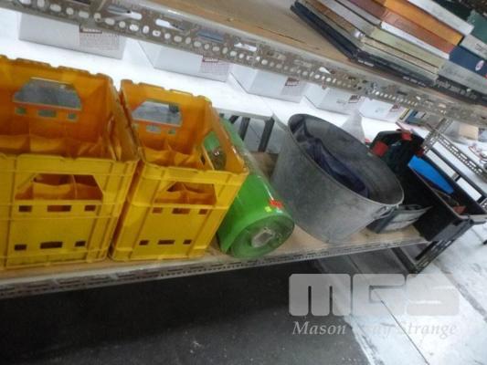 GALV LAUNDRY TROUGH, DRINKS CRATES, HAND TOOLS, ETC