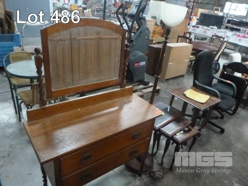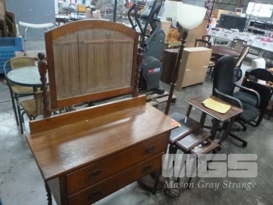OAK DRESSER, TILT MIRROR, 2 DRAWER, STANDARD LAMP, NEST 3 TABLES & OCCASIONAL TABLE