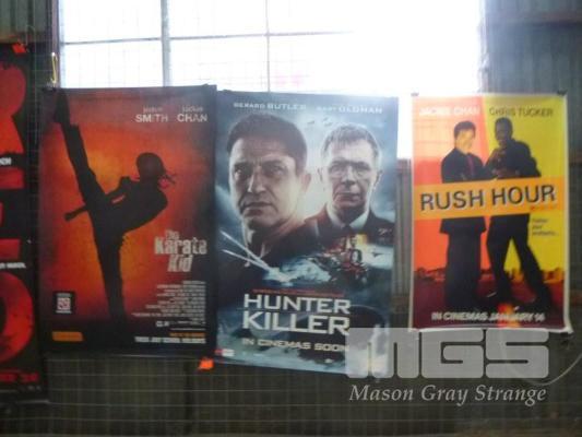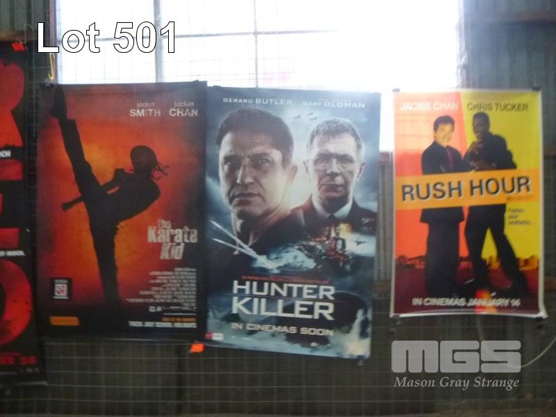 3 x SUPER SIZED ORIGINAL CINEMA MOVIE POSTERS, THE KARATE KID, HUNTER KILLER, RUSH HOUR, 1.18 x 1.78m