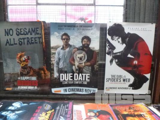 3 x SUPER SIZED ORIGINAL CINEMA MOVIE POSTERS DUE DATE, THE HAPPY TIME MURDERS, THE GIRL IN THE SPIDERS WEB, 1.18 x 1.78m