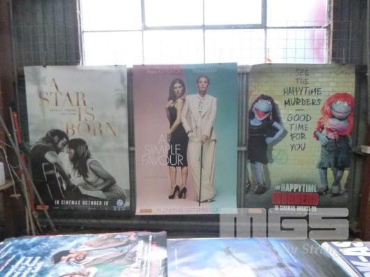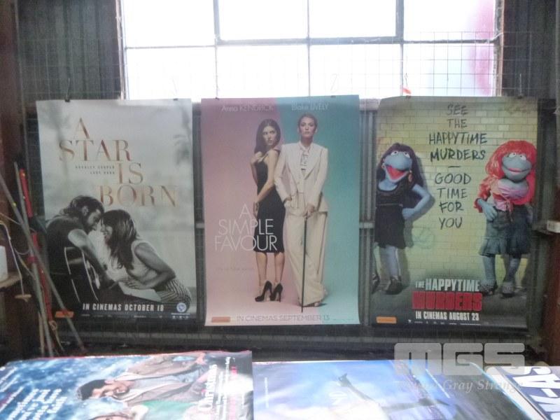 3 x SUPER SIZED ORIGINAL CINEMA MOVIE POSTERS A STAR IS BORN, A SIMPLE FAVOUR, THE HAPPY TIME MURDERS, 1.18 x 1.78m