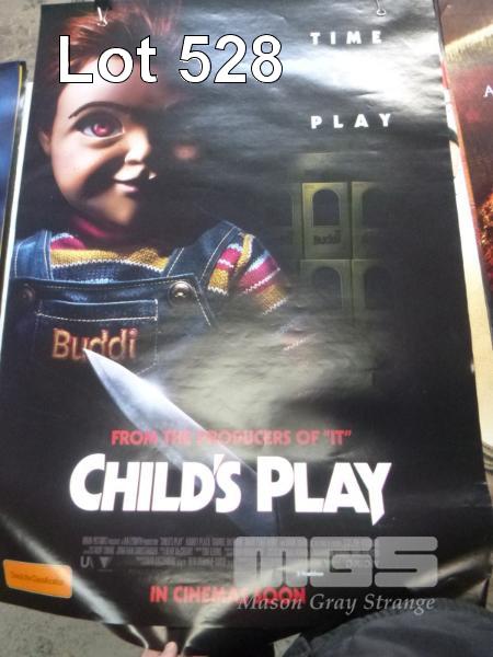 6 x MOVIE POSTERS, CHILDS PLAY, THE CONJURING, HOSTEL, STIR OF THE ECHES, HEREDITARY SHUTTER ISLAND, 300 70cm x 1m (H)