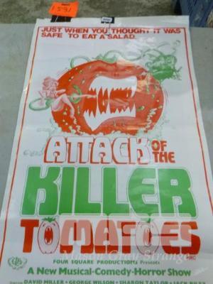 4 x ORIGINAL DAY BILL MOVIE POSTERS INC ATTACK OF THE KILLER TOMATOES, FRIDAY THE 13TH, SPIDER MAN, JAZZ SINGER, 76 x 36cm
