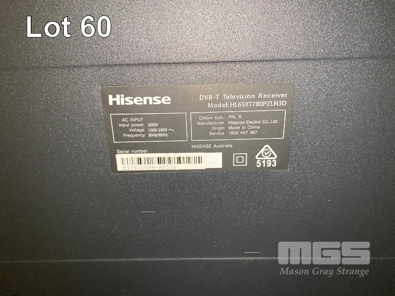 HISENSE XT780 SERIES 65" FULL HD TV, MODEL HL65XT780PZLN3D WITH REMOTE & WALL BRACKET (NO STAND)