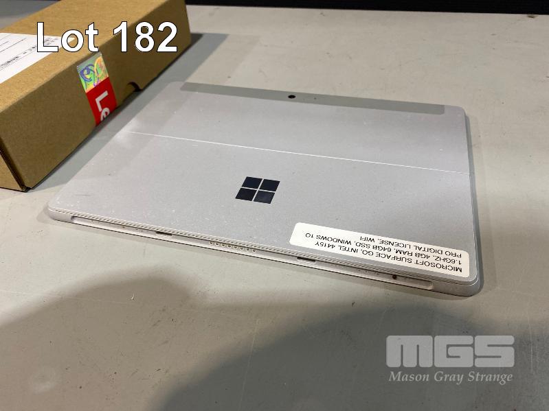 TABLET PC, MICROSOFT SURFACE GO, MODEL 1824, PENTIUM 4415Y @ 1.6GHz, 4GB RAM, 64GB STORAGE, 10" TOUCHSCREEN, Wi-Fi, WINDOWS 10 INSTALLED & (LENOVO) USB-C POWER SUPPLY S/N:000344383651