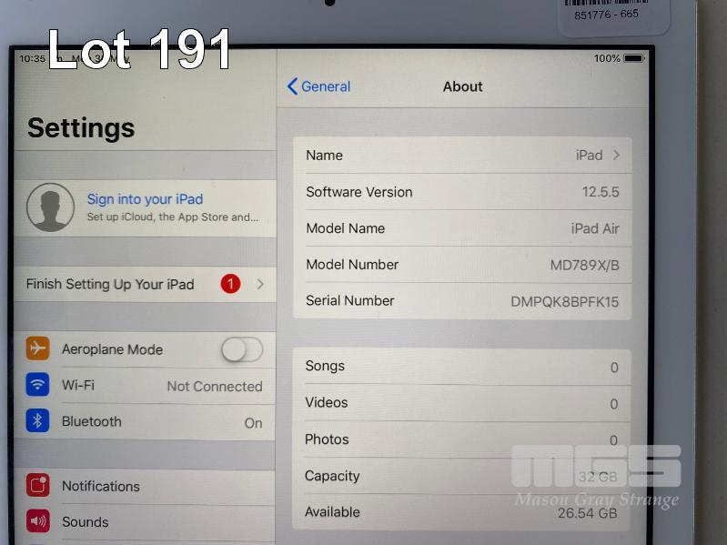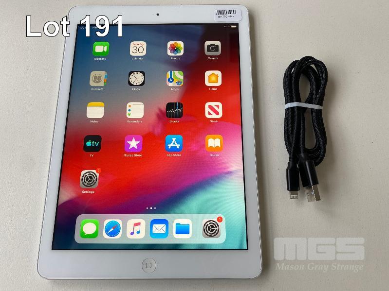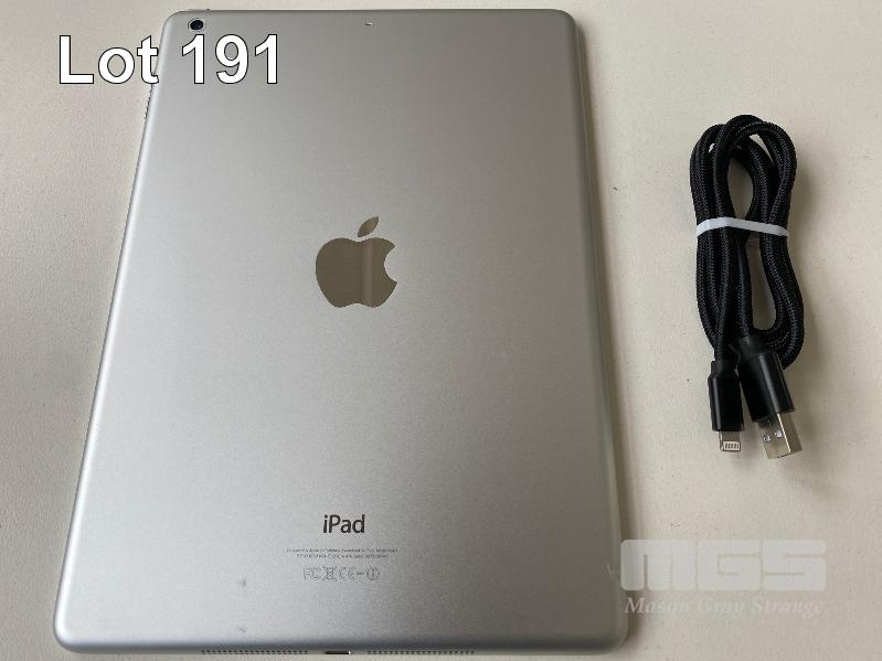 APPLE iPAD AIR, 32GB, Wi-Fi, SILVER, MODEL A1474 (WITH CABLE, NO CHARGER) S/N:DMPQK8BPFK15
