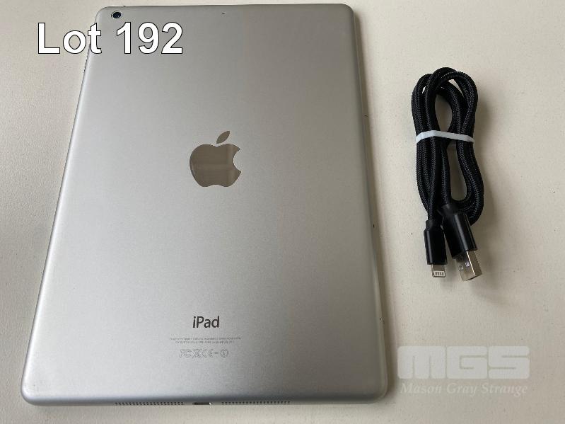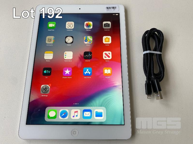 APPLE iPAD AIR, 32GB, Wi-Fi, SILVER, MODEL A1474 (WITH CABLE, NO CHARGER) S/N:DMPQ6RLYFK15