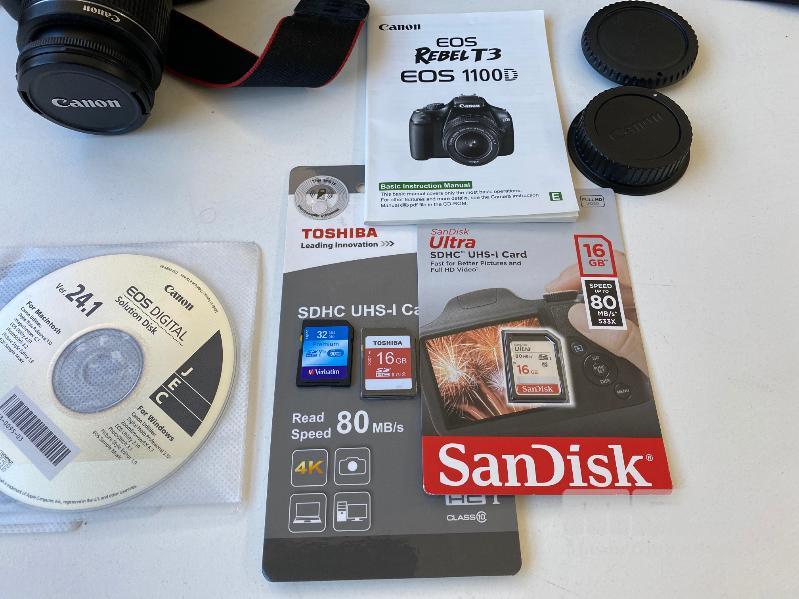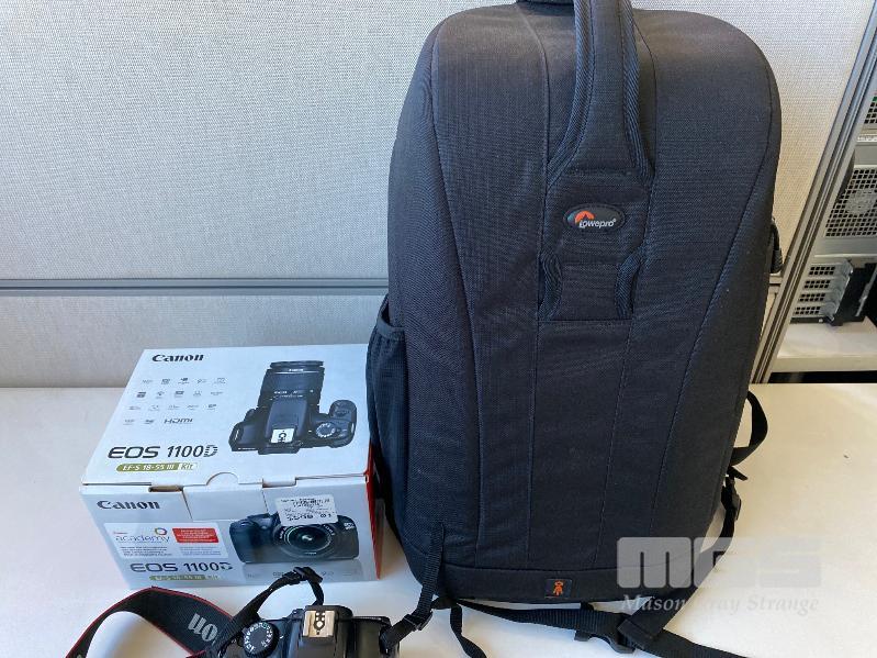 CANON EOS 1100D DSLR CAMERA, WITH EF-S 18-55mm LENS, SD CARDS, CHARGER & LOWEPRO FLIPSIDE 300 BACKPACK S/N:235073172044