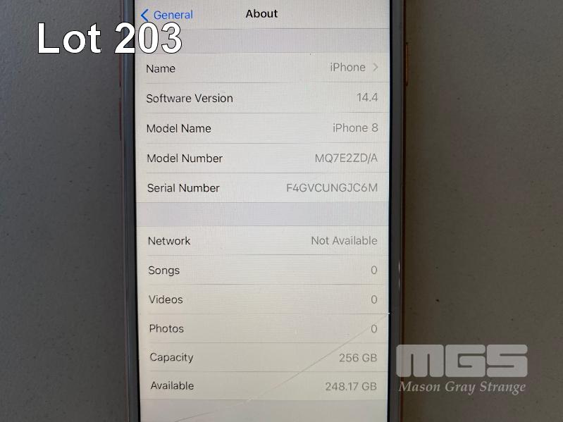 APPLE iPHONE 8, 256GB, GOLD, MODEL MQ7E2ZD/A WITH CABLE & CHARGER (NOTE: DAMAGED SCREEN) S/N:F4GVCUNGJC6M