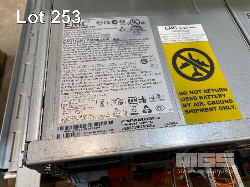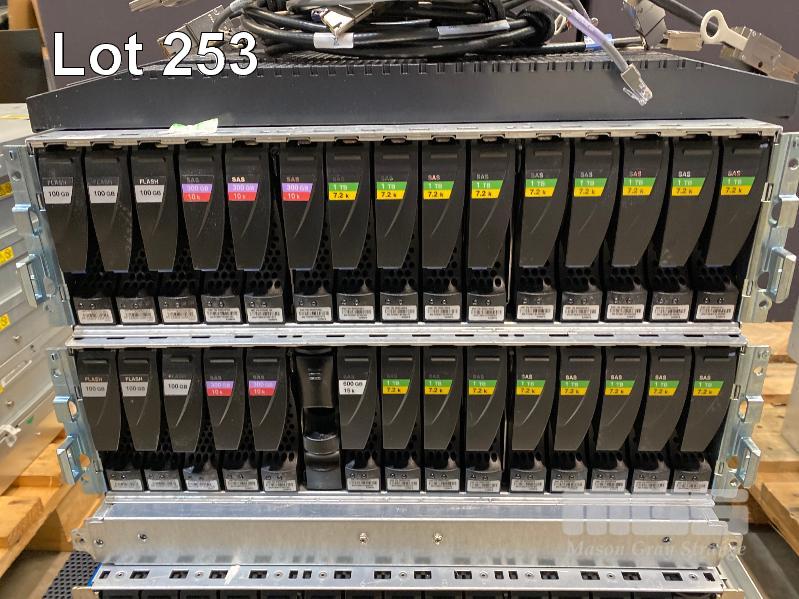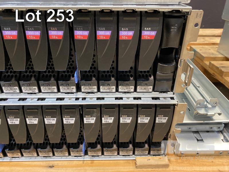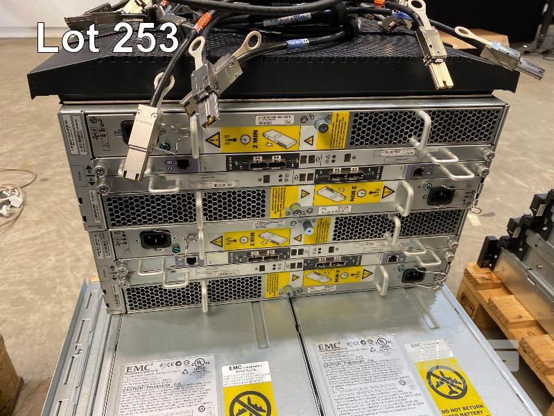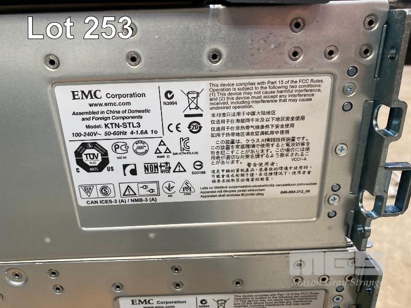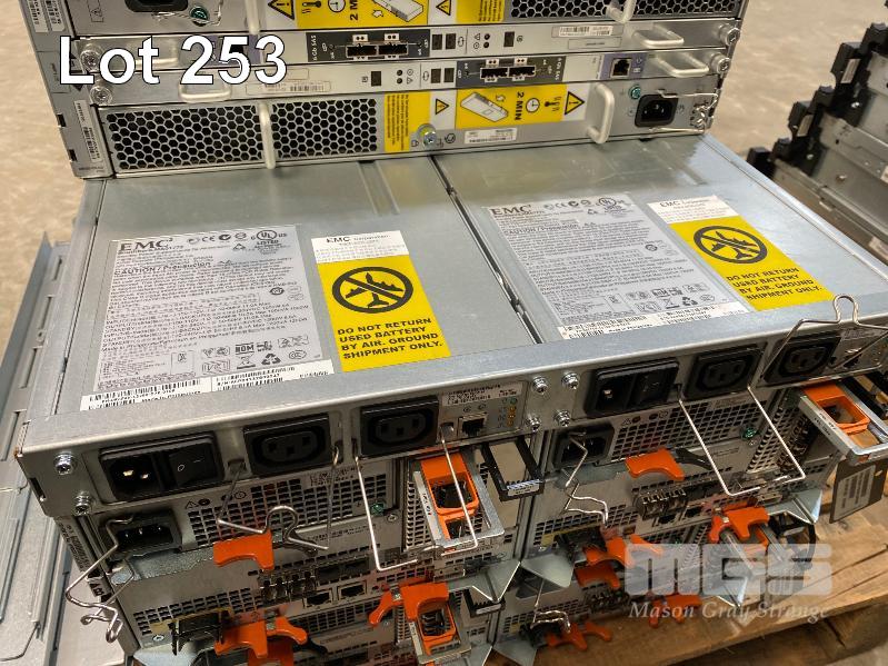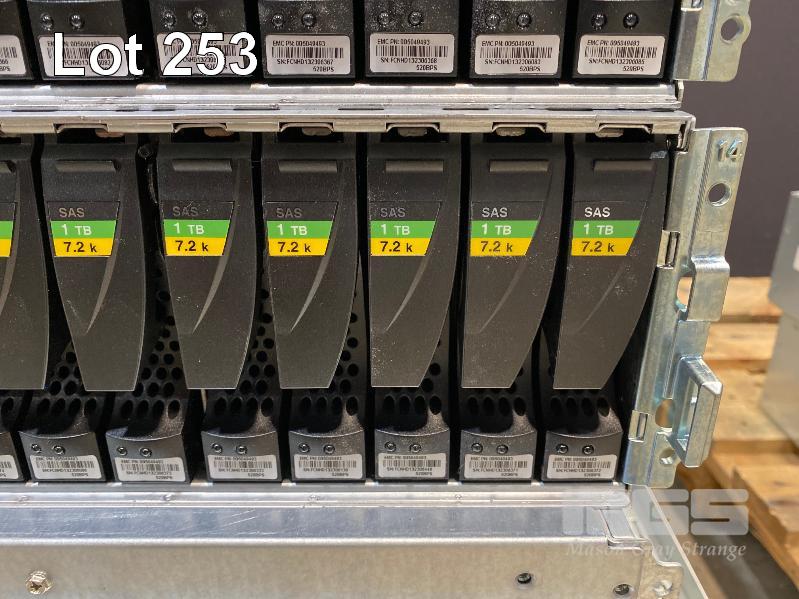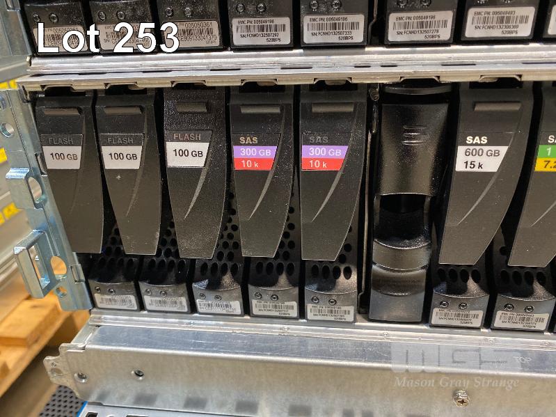 RACKMOUNT STORAGE ARRAY SYSTEM COMPRISING, - DELL EMC2 VNX5300 DPE, 9 x 600GB SAS HDD, 2 x 100GB FLASH DRIVES, 4 x 300GB SAS HDD WITH RAILS - DELL EMC2 VNX5300 DPE, 14 x 300GB SAS HDD WITH RAILS - DELL EMC2, MODEL KTN-STL3, 9 x 1TB SAS HDD, 3 x 300GB SAS HDD, 3 x 100GB FLASH DRIVES - DELL EMC2, MODEL KTN-STL3, 8 x 1TB SAS HDD, 1 x 600GB SAS HDD, 2 x 300GB SAS HDD, 3 x 100GB FLASH DRIVES - DELL EMC2 1200W POWER SUPPLY UNIT (x2), MODEL SG6004 WITH RAILS (WITH QTY SAS CABLES) (NO POWER CABLES) (NOTE: 3 x HARD DRIVES FAULTY)