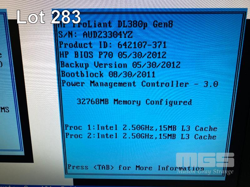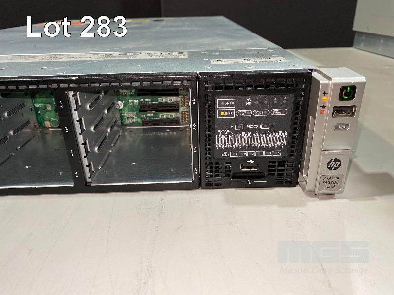 RACKMOUNT SERVER, HP PROLIANT DL380p Gen8, 2U, 2 x XEON E5-2640 @ 2.5GHz, 32GB ECC DDR3 RAM, 8 x 146GB SAS HDD, 2 x 460W PSU (NOTE: MISSING 2ND RAID CONTROLLER) S/N:AUD23304YZ