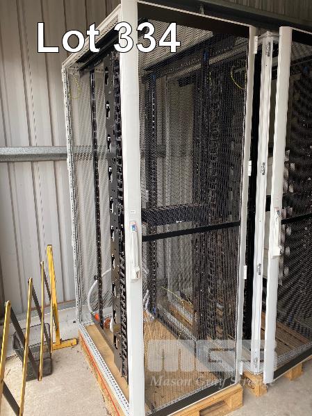 DATA RACK CABINET, RITTAL, 47U, MODEL 5516.110, MESH FRONT & REAR PANELS, 218 x 80 x 120cm (NO SIDE PANELS, NO KEYS) WITH APC AP8853 RACK PDU, 32A, (36) C13 & (6) C19