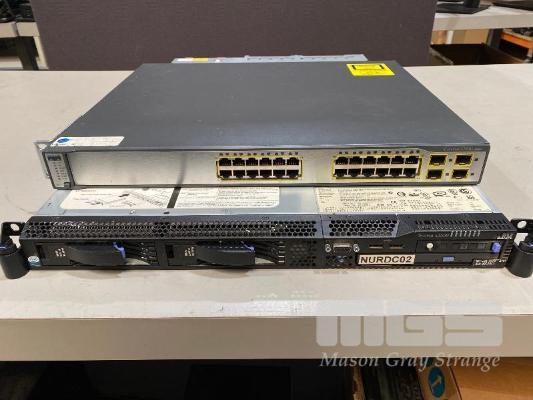RACKMOUNT SERVER, IBM SYSTEM x3550, 1U, XEON 5120 @ 1.86GHz, 4GB RAM, 2 x 73GB HDD CISCO CATALYST 3750G SERIES 24-PORT SWITCH, WS-C3750G-24TS-S1U V03 (NO CABLES) S/N:99C2041, FOC1319Y3X3
