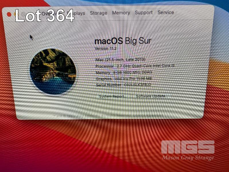 APPLE iMAC (A1418), CORE i5 4570R (4TH GEN) @ 2.7GHz, 8GB DDR3 RAM, 1TB SATA HDD, BUILT-IN 21.5" DISPLAY (1920x1080), INTEL IRIS PRO GRAPHICS, Wi-Fi, MAC OS 11 INSTALLED, KEYBOARD & MOUSE S/N:C02L5LK3F8J2
