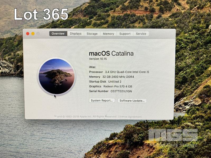 APPLE iMAC (A1419), CORE i5 7500 (7TH GEN) @ 3.4GHz, 32GB DDR4 RAM, 1TB SATA HDD, BUILT-IN 27" RETINA DISPLAY (5120x2880), 2GB RADEON PRO 570 VIDEO, Wi-Fi, MAC OS 10.15 INSTALLED (NO KEYBOARD, NO MOUSE, NO CABLE) (NOTE: DAMAGE TO SCREEN & CASING) S/N:C02TT02VJ1GN