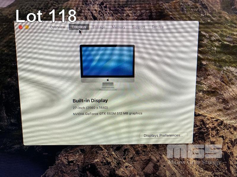 APPLE iMAC (A1419), CORE i5 3470S (3RD GEN) @ 2.9GHz, 8GB DDR3 RAM, 1TB SATA HDD, BUILT-IN 27" DISPLAY (2560x1440), 512MB NVIDIA GEFORCE GTX 660M VIDEO, Wi-Fi, MAC OS 10.15 INSTALLED (NO KEYBOARD, NO MOUSE, NO CABLE) (NOTE: STAND HINGE LOOSE, SCREEN TILTS FORWARD) S/N:C02KH57VDNCV