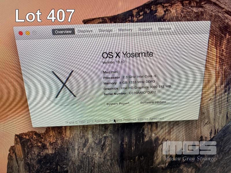 APPLE MAC MINI (A1347), CORE i5 2415M (2ND GEN) @ 2.3GHz, 8GB DDR3 RAM, 500GB SATA HDD, INTEL HD VIDEO, Wi-Fi, MAC OS 10.10 INSTALLED (NO KEYBOARD, NO MOUSE, NO CABLE) S/N:C07GM0CFDJD2