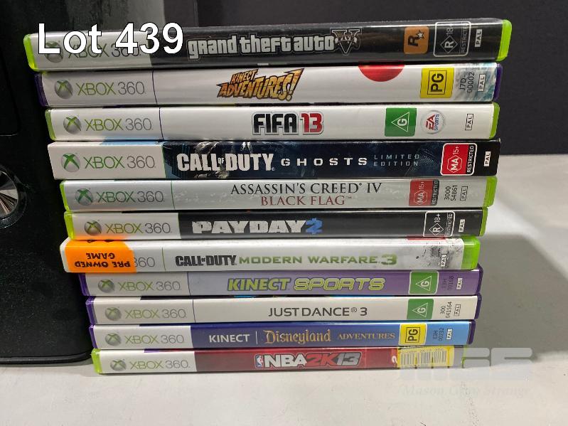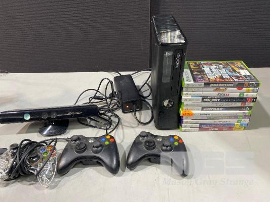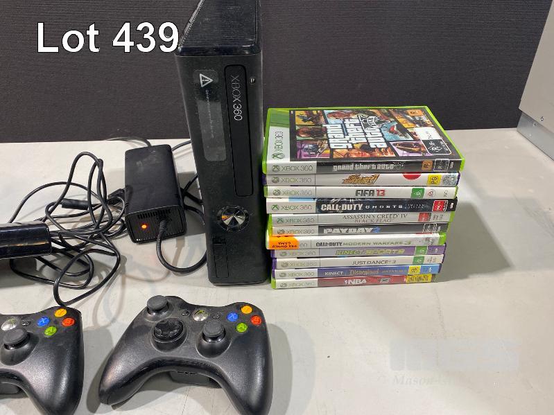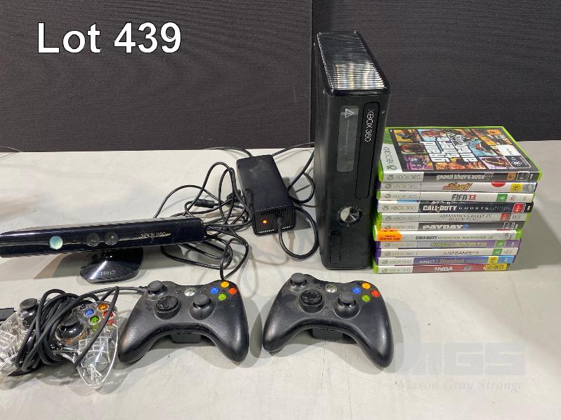 MICROSOFT XBOX 360 GAME CONSOLE, MODEL 1439 (FAULTY, - RED LIGHT) WITH CONTROLLERS & GAMES
