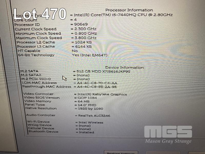 LAPTOP, DELL LATITUDE 5480, CORE i5 7440HQ (7TH GEN) @ 2.9GHz, 8GB DDR4 RAM, 512GB M.2 SSD, 14" WIDESCREEN (1920x1080), INTEL KABYLAKE GRAPHICS, Wi-Fi, BLUETOOTH, WINDOWS 10 HOME INSTALLED & POWER SUPPLY S/N:D02D3M2