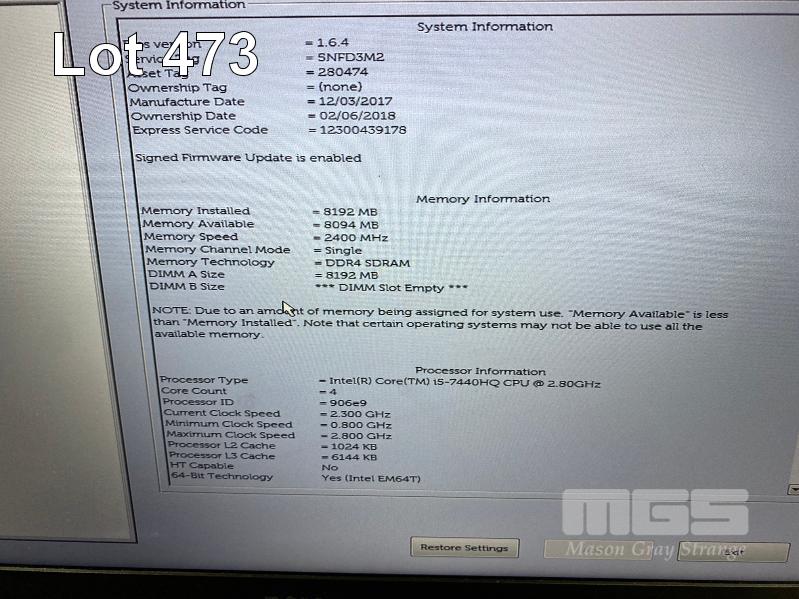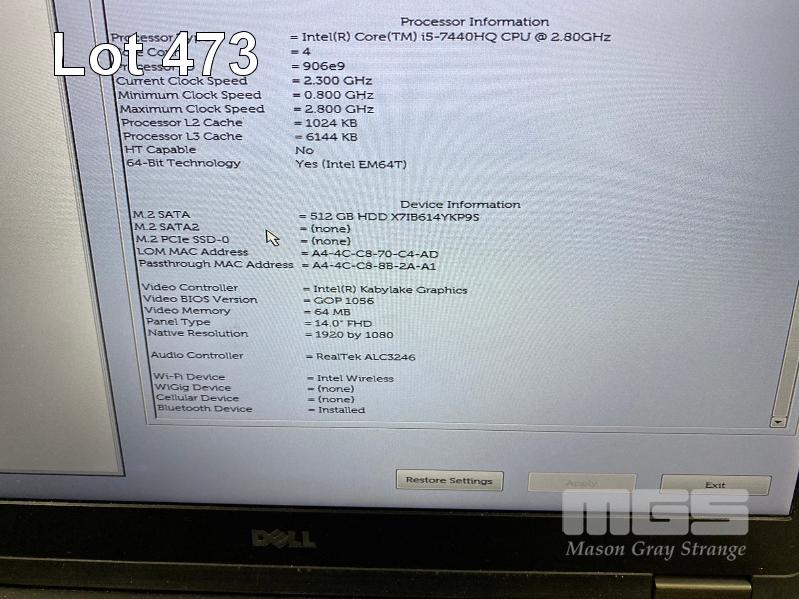 LAPTOP, DELL LATITUDE 5480, CORE i5 7440HQ (7TH GEN) @ 2.9GHz, 8GB DDR4 RAM, 512GB M.2 SSD, 14" WIDESCREEN (1920x1080), INTEL KABYLAKE GRAPHICS, Wi-Fi, BLUETOOTH, WINDOWS 10 HOME INSTALLED & POWER SUPPLY S/N:5NFD3M2