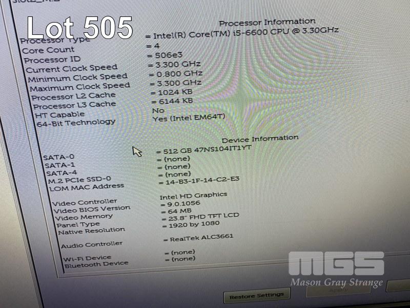 ALL-IN-ONE PC, DELL OPTIPLEX 7450, CORE i5 6600 (6TH GEN) @ 3.3GHz, 16GB DDR4 RAM, 512GB SSD, INBUILT 23.8" FHD WIDESCREEN (1920x1080), INTEL HD VIDEO, WEBCAM, 7 x USB, 1 x USB-C, WINDOWS 10 HOME INSTALLED, KEYBOARD & MOUSE (NOTE: SCRATCH ON SCREEN) S/N:4BT2DK2