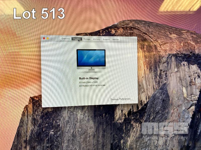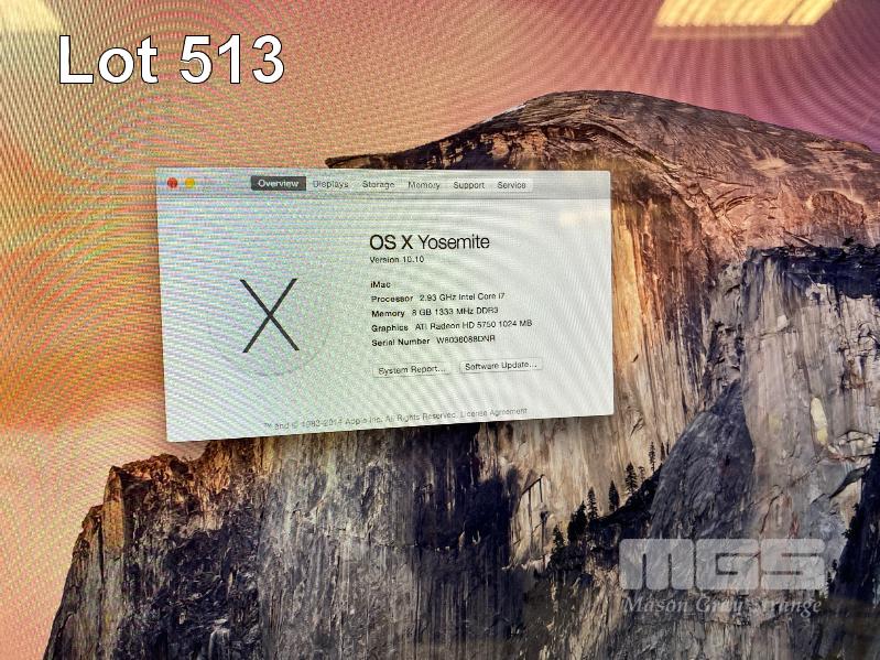 APPLE iMAC (A1312), CORE i7 870 @ 2.93GHz, 8GB DDR3 RAM, 2TB SATA HDD, DVD-RW, BUILT-IN 27" DISPLAY (2560x1440), 1GB ATI RADEON HD 5750 VIDEO, Wi-Fi, MAC OS 10.10 INSTALLED (NO KEYBOARD, NO MOUSE, NO CABLE) (NOTE: DAMAGE TO SCREEN) S/N:W8036088DNR