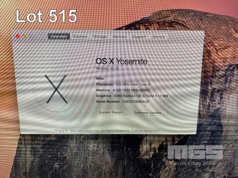 APPLE iMAC (A1311), CORE i5 2400S (2ND GEN) @ 2.5GHz, 4GB DDR3 RAM, 500GB SATA HDD, DVD-RW, BUILT-IN 21.5" DISPLAY (1920x1080), 512MB AMD RADEON HD 6750M VIDEO, Wi-Fi, MAC OS 10.10 INSTALLED (NO KEYBOARD, NO MOUSE, NO CABLE) S/N:C02G72B8DHJF