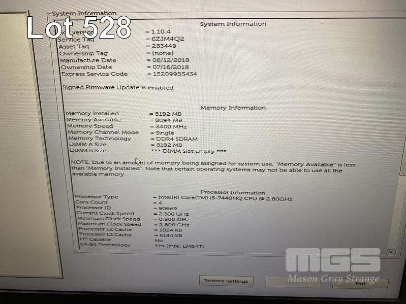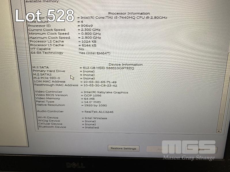 LAPTOP, DELL LATITUDE 5480, CORE i5 7440HQ (7TH GEN) @ 2.9GHz, 8GB DDR4 RAM, 512GB M.2 SSD, 14" WIDESCREEN (1920x1080), INTEL KABYLAKE GRAPHICS, Wi-Fi, BLUETOOTH, WINDOWS 10 HOME INSTALLED & POWER SUPPLY (NOTE: NO BATTERY, MARKS ON SCREEN) S/N:6ZJM4Q2