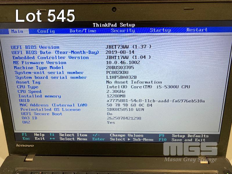 LAPTOP, LENOVO THINKPAD T450 (20BUS03705), CORE i5 5300U (5TH GEN) @ 2.3GHz, 12GB DDR3 RAM, 500GB SATA HDD, 14" WIDESCREEN (1366x768), INTEL HD VIDEO, Wi-Fi, BLUETOOTH, WINDOWS 10 PRO INSTALLED & POWER SUPPLY (NOTE: RUNS SLOW) S/N:PC08ZKDU