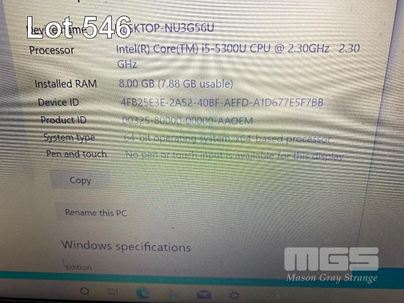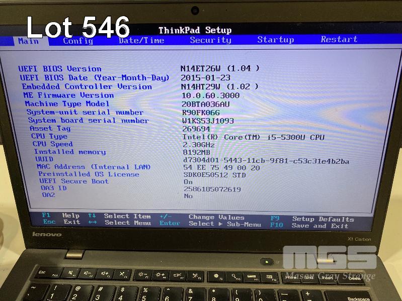 LAPTOP, LENOVO THINKPAD X1 CARBON (20BTA036AU), CORE i5 5300U (5TH GEN) @ 2.3GHz, 8GB DDR3 RAM, 256GB SSD, 14" WIDESCREEN (1920x1080), INTEL HD VIDEO, Wi-Fi, BLUETOOTH, WINDOWS 10 HOME INSTALLED, ONELINK PRO DOCK & POWER SUPPLY (NOTE: MARKS ON SCREEN) S/N:R90FK06G