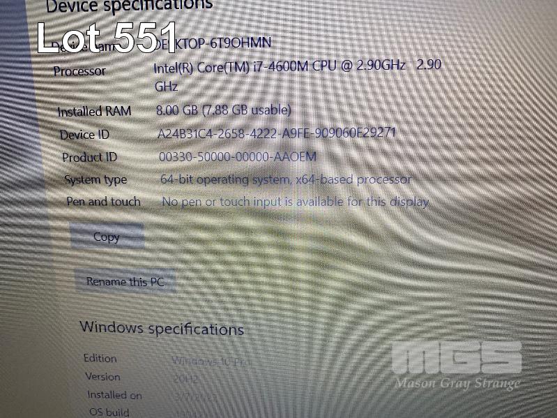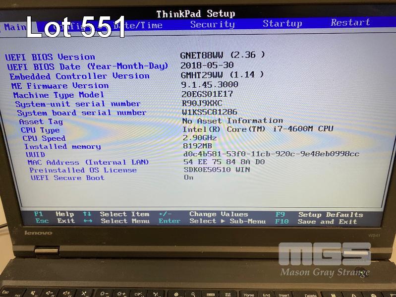 LAPTOP, LENOVO THINKPAD W541 (20EGS01E17), CORE i7 4600M (4TH GEN) @ 2.9GHz, 8GB DDR3 RAM, 500GB SATA HDD, DVD-RW, 15.6" WIDESCREEN (1920x1080), INTEL HD VIDEO, 2GB NVIDIA QUADRO K1100M VIDEO, Wi-Fi, BLUETOOTH, WINDOWS 10 PRO INSTALLED & POWER SUPPLY (NOTE: MARKS ON SCREEN, BATTERY NOT CHARGING) S/N:R90J9XXC