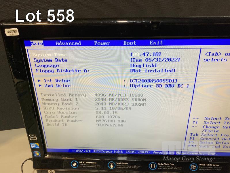 ALL-IN-ONE PC, HP TOUCHSMART 600-1070a, CORE 2 DUO T6600 @ 2.2GHz, 4GB DDR3 RAM, 240GB SSD, INBUILT 23" LCD TOUCHSCREEN, WINDOWS 10 PRO INSTALLED & POWER SUPPLY (NO KEYBOARD, NO MOUSE)