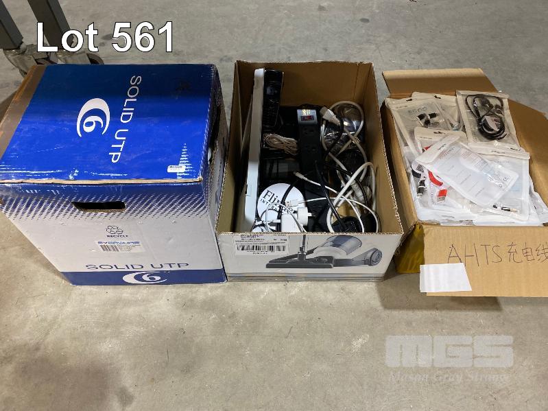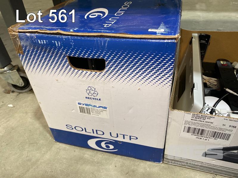 PART ROLL CAT6 NETWORK CABLE, BOX INCLUDING, POWER BOARD, UNIDEN CORDLESS PHONES, USB CHARGERS, BOX OF 75 x USB MULTI-CHARGING CABLES