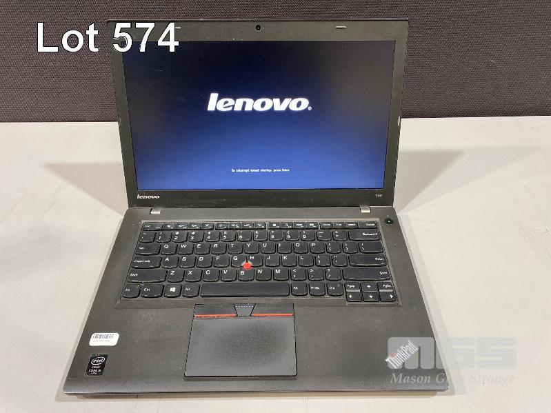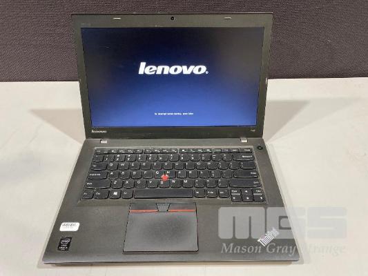LAPTOP, LENOVO THINKPAD T450 (20BUS03705), CORE i5 5300U (5TH GEN) @ 2.3GHz, 12GB DDR3 RAM, 256GB SSD, 14" WIDESCREEN (1366x768), INTEL HD VIDEO, Wi-Fi, BLUETOOTH, WINDOWS 10 PRO INSTALLED & POWER SUPPLY (NOTE: MARKS ON SCREEN, MESSAGE "FAN ERROR" ON STARTUP - LAPTOP SHUTSDOWN)