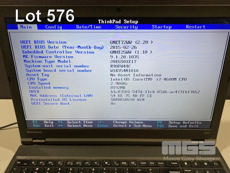 LAPTOP, LENOVO THINKPAD W541 (20EGS01E17), CORE i7 4600M (4TH GEN) @ 2.9GHz, 8GB DDR3 RAM, NO HDD, DVD-RW, 15.6" WIDESCREEN (NO POWER SUPPLY) (NOTE: DAMAGE TO CASING, BATTERY NOT CHARGING, MISSING BOTTOM COVER) S/N:R90FW44C