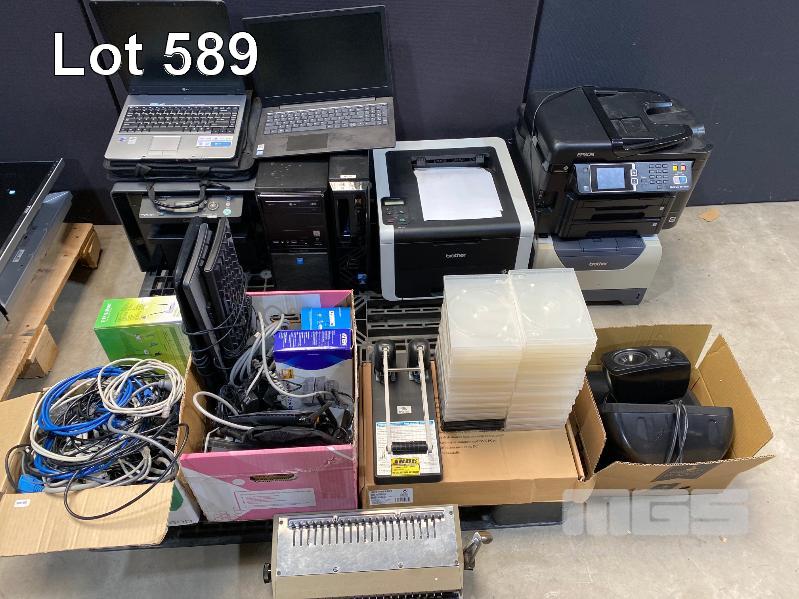 1 x PALLET LOTS ASST CABLES, VARIOUS FAULTY INCOMPLETE COMPUTERS, PRINTERS, LAPTOPS, DVD CASES, BINDER, HD HOLE PUNCH, SPEAKERS ETC
