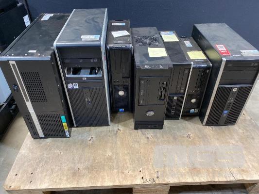 7 x ASST COMPUTERS INC. ADVANTECH, 4U CHASSIS, UNKNOWN SPECS, 2 x 500GB HDD HP COMPAQ dc7800p TOWER DELL OPTIPLEX 780, CORE 2 DUO E8400 @ 3GHz, 4GB RAM, 250GB HDD COOLER MASTER, CORE 2 QUAD Q8400 @ 2.66GHz, 4GB RAM, 500GB HDD HP COMPAQ PRO 6300, CELERON G1610 @ 2.6GHz, 8GB RAM, 500GB HDD DELL OPTIPLEX 745, PENTIUM D 3.2GHz, 1GB RAM, NO HDD HP COMPAQ 6200 PRO TOWER, UNKNOWN SPECS, NO HDD (NO CABLES)