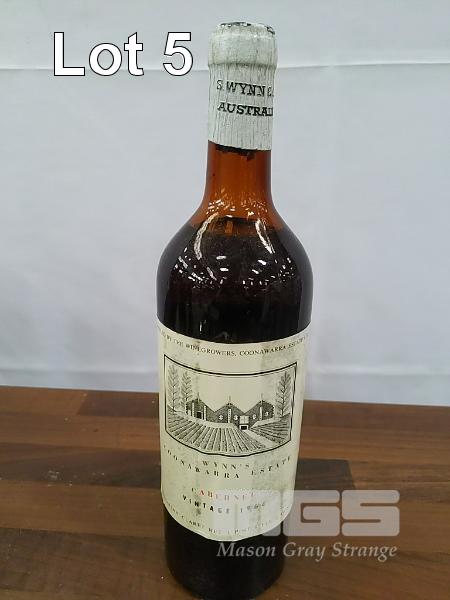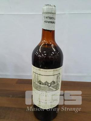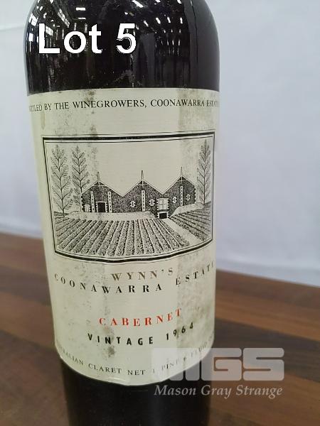 1964 WYNN'S COONAWARRA ESTATE CABERNET. SINGLE "NET 1 PINT 6 FLUID OUNCES" CLARET BOTTLE, UNDER CORK. * THE LAST VINTAGE OF THE WYNN'S WHITE LABEL CABERNET BEFORE THE INTRODUCTION OF THE THE BLACK LABEL CABERNET SAUVIGNON IN 1965 * FILL LEVEL "TOP SHOULDER". CAPSULE FAIR. BOTTLE & LABELS FAIR.