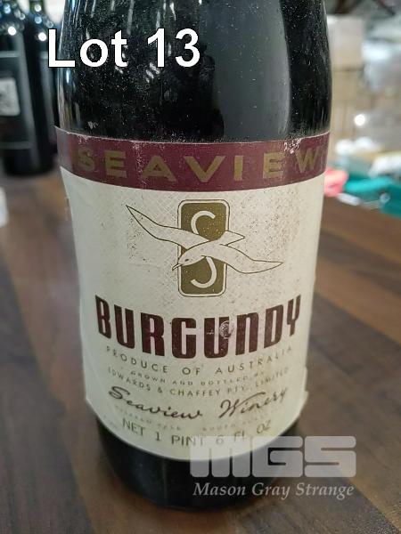 1970 SEAVIEW BURGUNDY. SINGLE 750ML BURGUNDY BOTTLE, UNDER CORK. FILL LEVEL "4 CM". CAPSULE GOOD. BOTTLE & LABEL GOOD. * VERY GOOD FOR AGE *