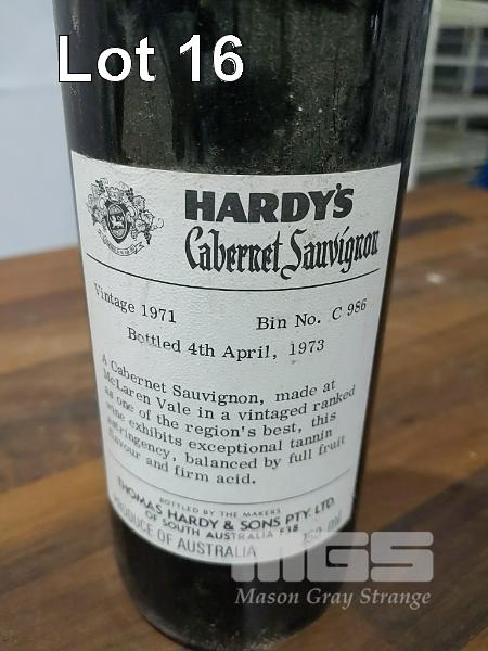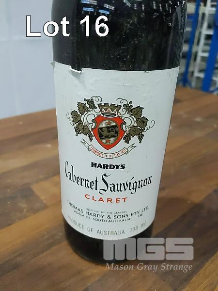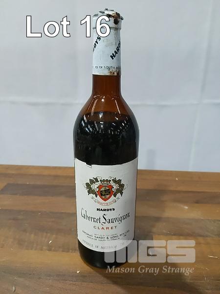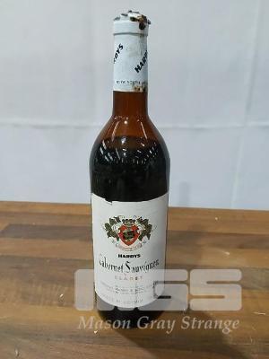 1971 HARDY'S CABERNET SAUVIGNON CLARET. SINGLE 750ML CLARET BOTTLE, UNDER CORK. * MCLAREN VALE CABERNET SAUVIGNON. BIN No. C986 * FILL LEVEL "MID SHOULDER". CAPSULE POOR, CORK EXPOSED AND SEEPAGE EVIDENT. BOTTLE & LABELS FAIR.