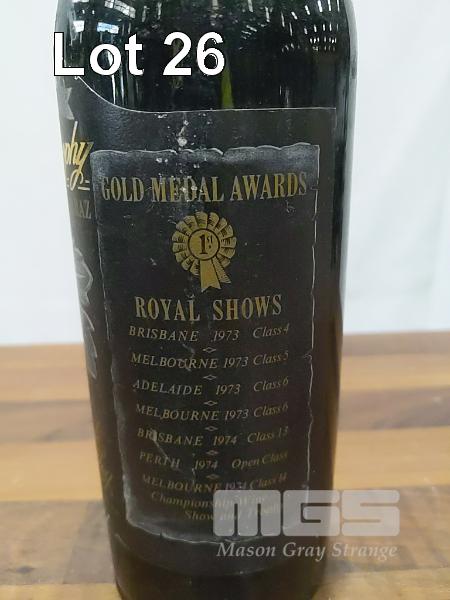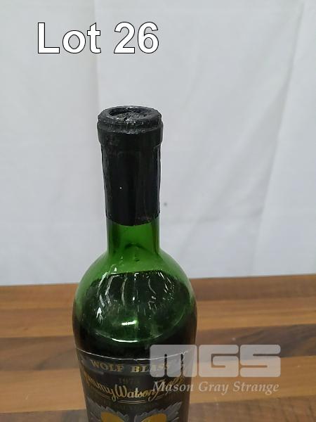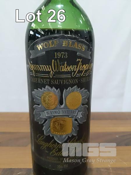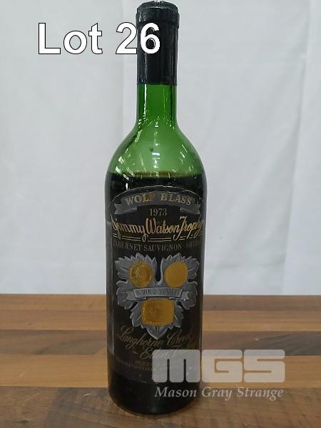 1973 WOLF BLASS BLACK LABEL CLARET - LANGHORNE CREEK ~ EDEN VALLEY CABERNET SAUVIGNON SHIRAZ. SINGLE 750ML CLARET BOTTLE, UNDER CORK. ** JIMMY WATSON TROPHY WINNER MELBOURNE WINE SHOW 1974 ** FILL LEVEL "LOW SHOULDER". CAPSULE FAIR, SOME CRUST ON TOP. BOTTLE & LABEL FAIR TO GOOD.