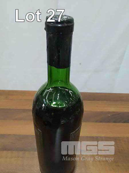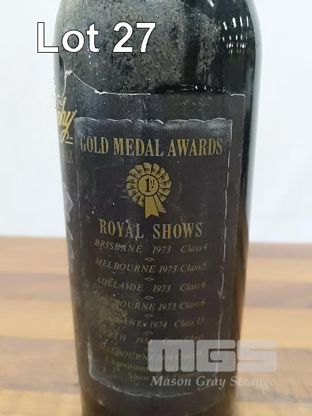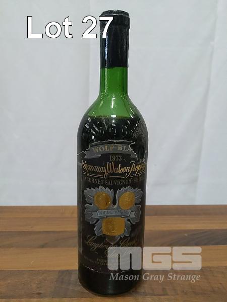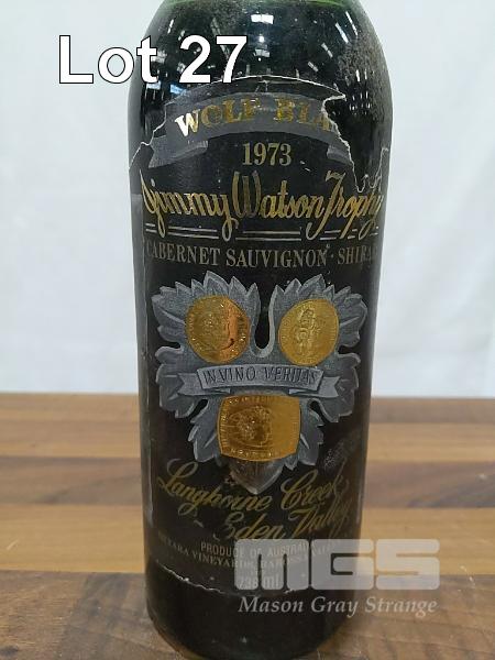 1973 WOLF BLASS BLACK LABEL CLARET - LANGHORNE CREEK ~ EDEN VALLEY CABERNET SAUVIGNON SHIRAZ. SINGLE 750ML CLARET BOTTLE, UNDER CORK. ** JIMMY WATSON TROPHY WINNER MELBOURNE WINE SHOW 1974 ** FILL LEVEL "MID SHOULDER". CAPSULE FAIR, SOME CRUST ON TOP. BOTTLE. TOP OF LABEL TORN.