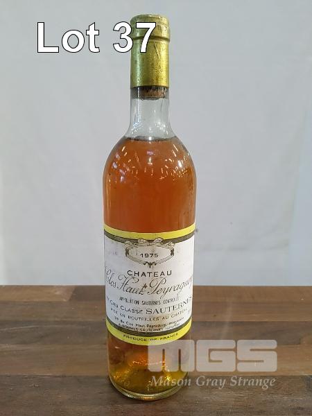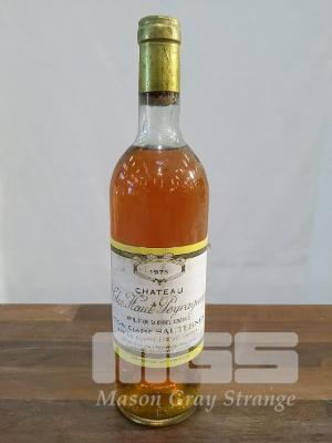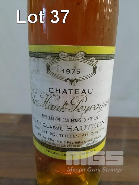 1975 CHATEAU CLOS HAUT-PEYRAGUEY - "PREMIER GRAND CRU CLASSE SAUTERNES". SINGLE 75cl BOTTLE. * WINE FROM SAUTERNES, BORDEAUX FRANCE * ** CHATEAU CLOS HAUT-PEYRAGUEY ** ** PREMIER CRU ** * APPELLATION SAUTERNES CONTROLEE * FILL LEVEL "TOP SHOULDER". CAPSULE FAIR TO GOOD. BOTTLE FAIR. LABEL FAIR SOME STAINING.