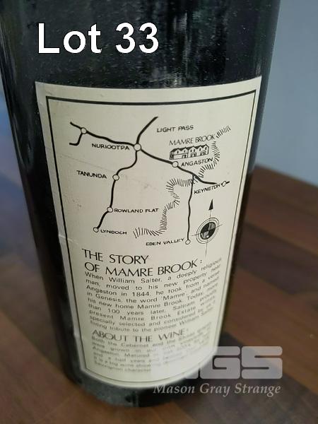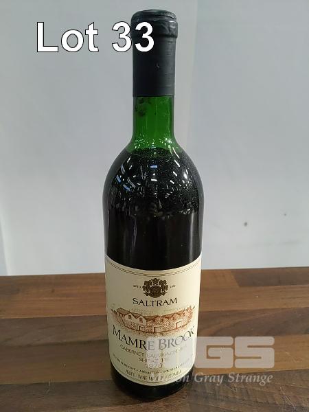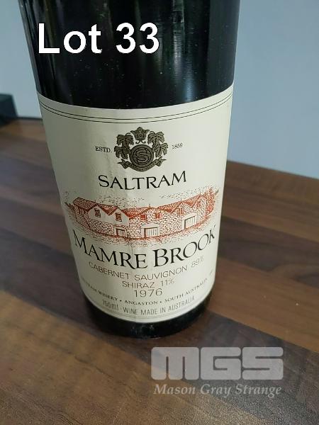 1976 SALTRAM "MAMRE BROOK" CABERNET SAUVIGNON 89% SHIRAZ 11%. SINGLE 750ML CLARET BOTTLE, UNDER CORK. * ANGASTON VINEYARDS BAROSSA * FILL LEVEL "TOP SHOULDER". CAPSULE GOOD. BOTTLE & LABEL GOOD.