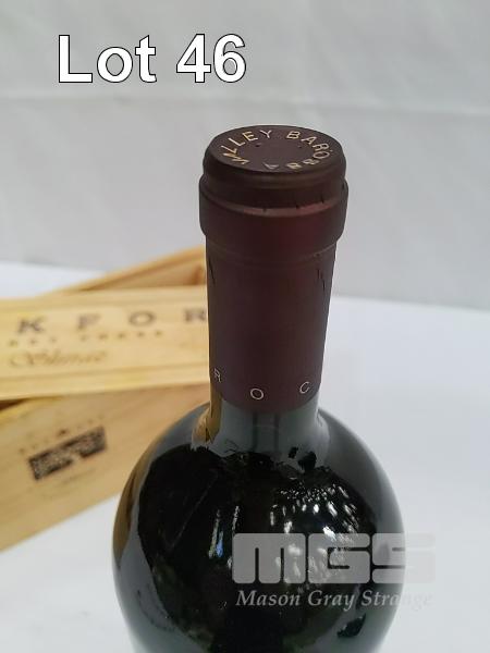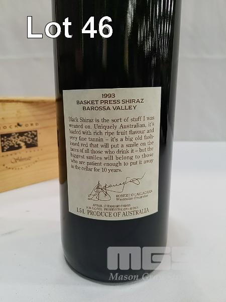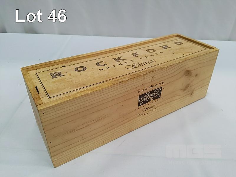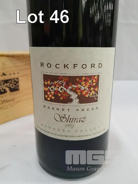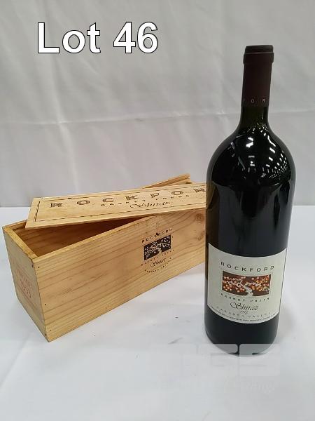 1993 ROCKFORD "BASKET PRESS" BAROSSA VALLEY SHIRAZ. SINGLE 1.5L MAGNUM, UNDER CORK IN SLIDING LID WOODEN PRESENTATION BOX. FILL LEVEL "IN NECK". CAPSULE VERY GOOD. BOX FAIR. BOTTLE CLEAN, LABELS GOOD.