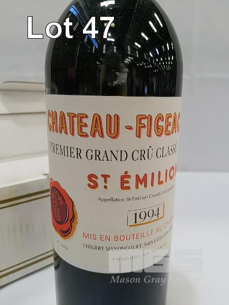 1994 SAINT EMILION CHATEAU FIGEAC - THIERRY MANONCOURT - PREMIER GRAND CRU CLASSE. SINGLE 1.5L MAGNUM WITH ORIGINAL BOX. * WINE FROM BORDEAUX, FRANCE * * APPELLATION ST-EMILION GRAND CRU * * BOUTEILLE No 106048". FILL LEVEL "VERY TOP SHOULDER". CAPSULE GOOD WITH NO INDICATION OF LEAKING. BOX, BOTTLE AND LABEL CLEAN AND FREE OF MARKS OR BLEMISHES.