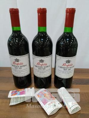 1986 PENFOLDS BIN 389 CABERNET SHIRAZ. 3 X 750ML CLARET BOTTLES, UNDER CORK. FILL LEVELS "BASE OF NECK" TO "IN NECK". CAPSULES EXCELLENT. BOTTLES AND LABELS VERY GOOD.